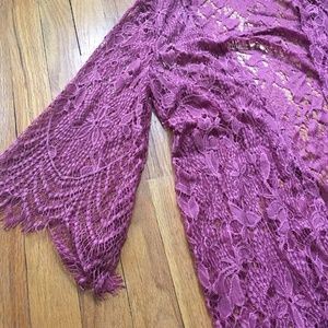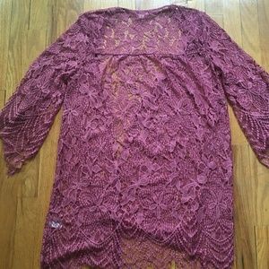 Gently used beautiful dusty rose lace cover up. Can be worn during the day or as a swim cover up!