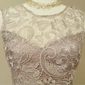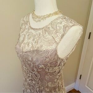 Francesca’s Lace Overlay Mini Dress – Silver/White, Elegant, Size Medium