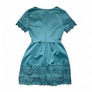 Francesca’s Lace Trim Fit & Flare Mini Dress Size S – Elegant Teal Cocktail