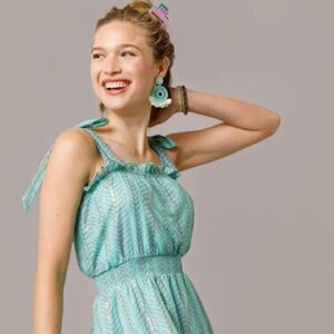 Francesca’s Layla Lurex Mini Dress mint and gold shoulder ties size small