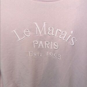 Le Marais Paris sweatshirt in a soft purple color. Features embroidered text on the front side small.