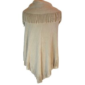 Francesca’s Light Cream Fringe Cowl Neck Shawl Poncho Cape OSFM NEW