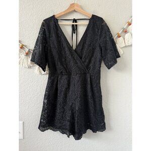 Francesca's Mi Ami Black Lace Knit Playsuit Romper Witchy Whimsygoth Goth M