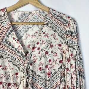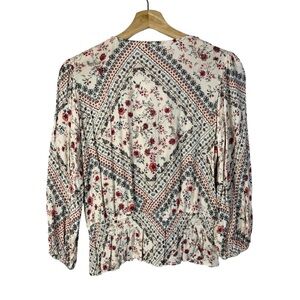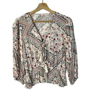 Francesca's Mi Ami Catelyn White Red Lace Up Tile Print Blouse XS