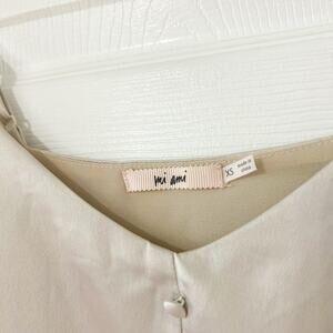 Francesca’s Mi Ami Champagne Satin Button Front Bodysuit Women’s Size XS