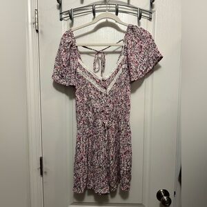 Francesca’s Mi Ami Floral Short Sleeve Short Romper Purple Pink White Size XS