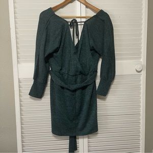 Francesca’s Mi Ami Open Back Wrap Green long sleeve Sweater Dress Sz L
