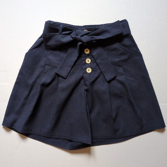 Francescas Mi Ami Womens XS Linen Blend Shorts Button Tie Waist Navy Blue Sailor