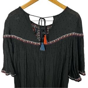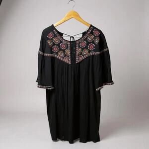 Francesca’s Miami Boho Short Flutter Sleeve Embroidered Mini Tunic Dress Large
