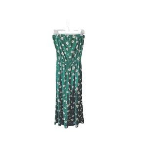 Francesca’s Miami Green Floral Print Cropped Strapless Jumpsuit Medium Women’s