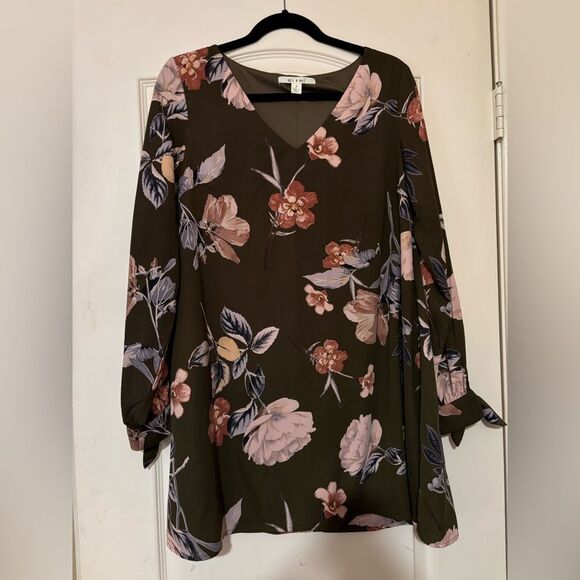 Francesca’s Miami Olive Floral Long Sleeve Dress