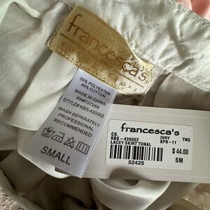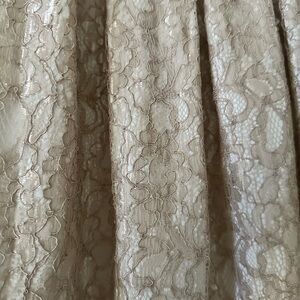 Francesca’s Cream lace pleated lace mini skirt with satin waist. Fully lined with a zip closure. New with tags. Size small.