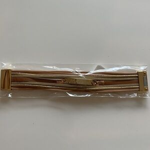 Complete your look with this tonal multi-strand bracelet featuring a textured gold plate detail and magnetic closure, it makes layering effortless!
