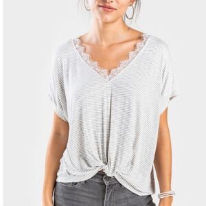 Francesca’s Nickie Lace Trim Striped Top Color Ivory & Grey Striped size XXS