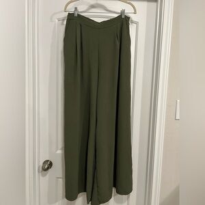 Francesca’s Olive Green Wide Leg Palazzo Pants High Waist Long Fall Capsule Boho
