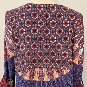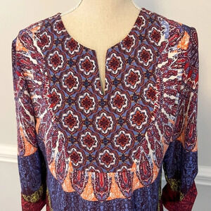Francesca’s Olive Hill Patterned V-Neck Blouse, Size M