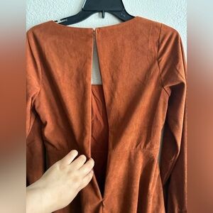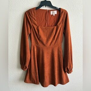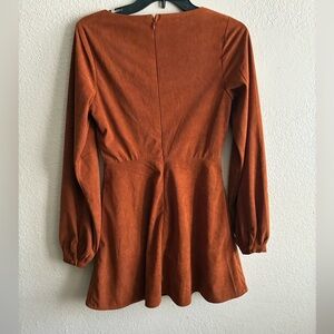 Francesca’s Paulette Corduroy Long Sleeve Rust Orange Mini Dress S