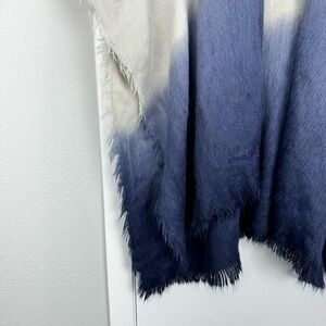 Francesca's Poncho Shawl Women's One Size Cream and Blue Dip Dye Raw Edges.