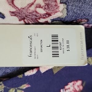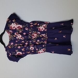 Tagged as a large, however this runs small, see measurements. Lightweight thin fabric. Surplice at the chest. Ties on the side. Flutter sleeves. Navy blue. Minimally sheer. Spring, summer, garden, dainty, dinner, date night, office, workplace, flirty