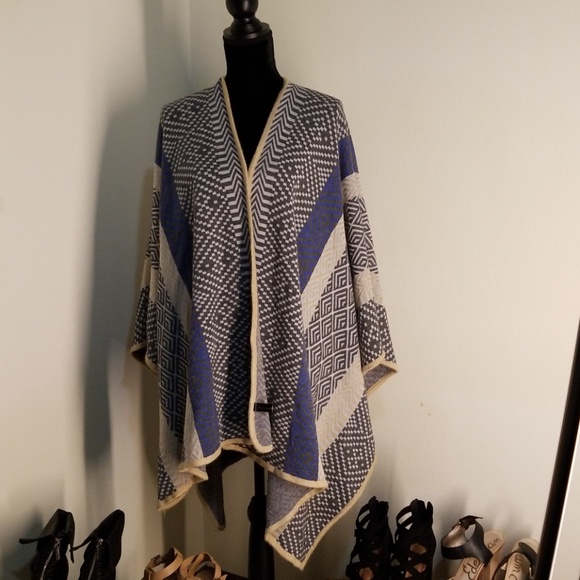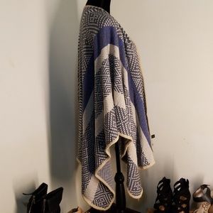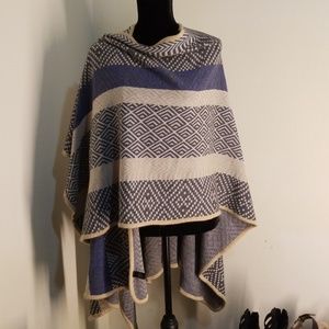 Warm One Size fits all Ruana Cream/Blue/Gray