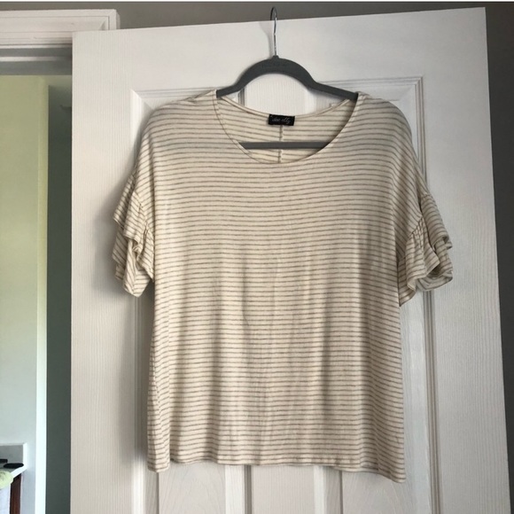 Striped tan/cream top, cute for spring or summer! There is no size tag but it is a small that fits loose.