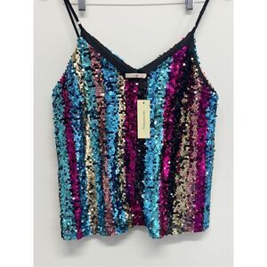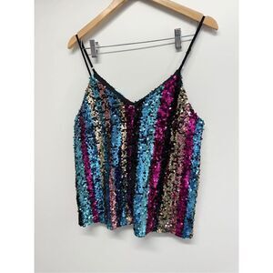 Francesca’s Sequin Cami Top Multicolor Medium V Neck NEW