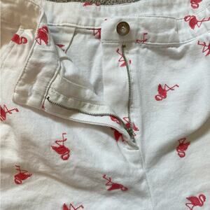 Francesca’s Jun & Ivy adorable white shorts with pink flamingos. 100% cotton. High waisted. 2 front slit pockets. No back pockets. You can wear as is or fold up the bottom cuff.