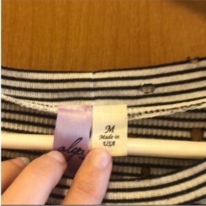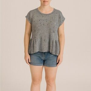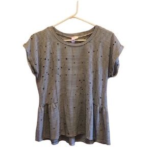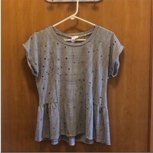 Francesca's Size Medium Black and White Striped Peplum Top.