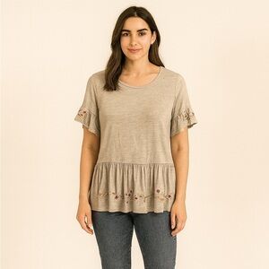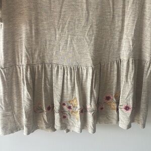 Francesca's Size Small Grey Floral Embroidered Peplum Babydoll Bohemian Style Top.