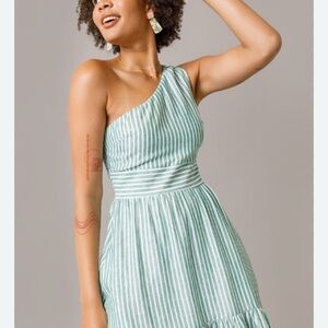 Francesca’s Sloane Striped One Shoulder Midi Dress High Low Linen Cotton Size XS