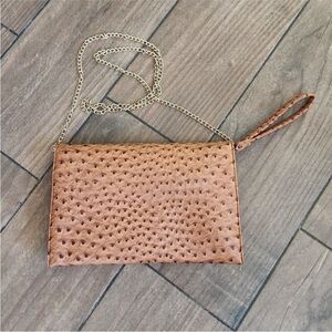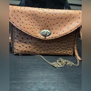 Francescas Street Level Ostrichove Purse Crossbody Gold Chain Handbag 13x8"