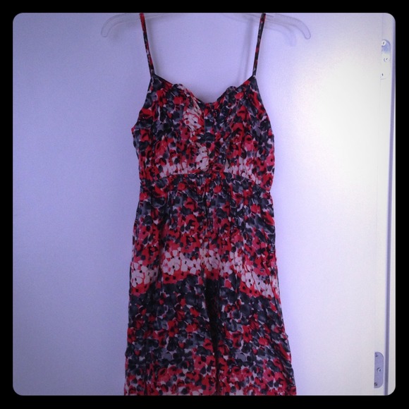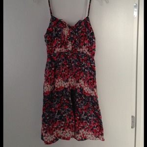 Adorable sundress with red, pink and purple flowers with adjustable straps, ruffled detail on the front. Very comfortable, great condition. Machine washable. Bought at Francesca's.