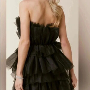 New with tags Francesca's Suzie Tulle Tiered Dress in black. This mini dress features delicate tulle layers and an off-the-shoulder neckline. The waisted design accentuates the figure.