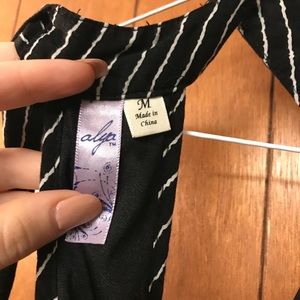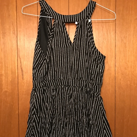 Purchased from Francesca's. Features a tie neck and zipper back. The cut out in front of romper adds perfect detail. About 4 inch inseam. The shorts have 2 layers of fabric.