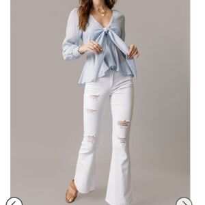 Francesca's Trixxi Light Blue Tie Front Blouse S