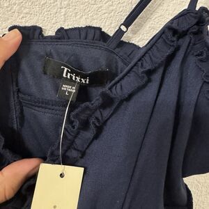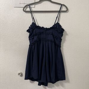Francescas Trixxi Spaghetti Strap Romper Womens Large Navy Vacation Feminine New