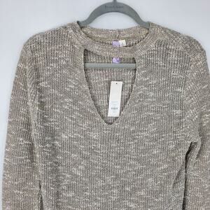 Francescas Alya choker cutout Taupe/gray color tunic sweater with side slits