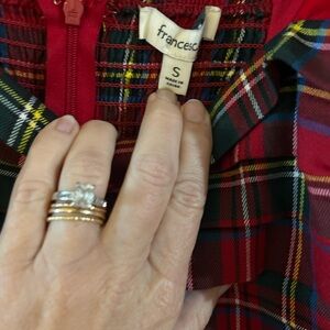 Adorable plaid dress by Francesca's. Features bold red and green tones. Adjustable Velvet like tie straps. Smocking in back. Lined and so cute. I wore once. Great shape.