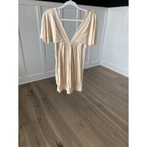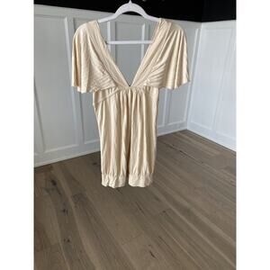 Francescas Whisper Womens Cream Plunging V Neck Flutter Sleeve Tunic Blouse Sz M