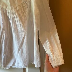 NWT Francesca’s White Long-Sleeved Cotton Blouse with Embroidered cutout details. Size XL