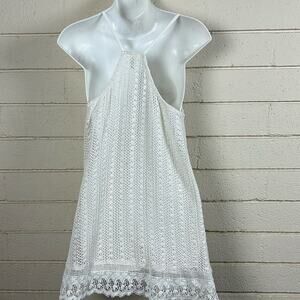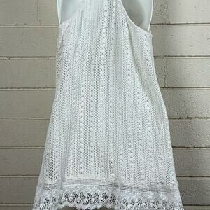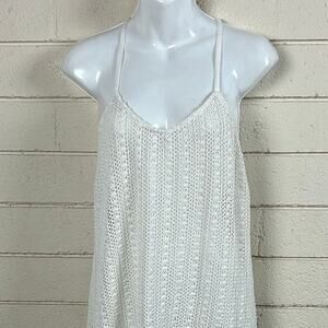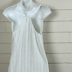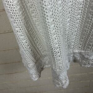 Francesca’s White Crochet Coverup size S. Approx. measurements 17” chest flat across, 26” length.