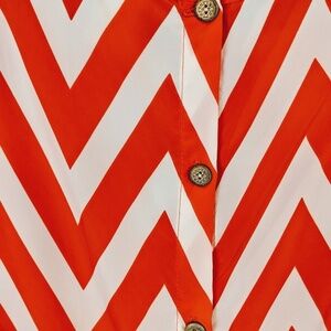 Francescas Womens Chevron Striped Short Sleeve Blouse Size L Button Accent Boho