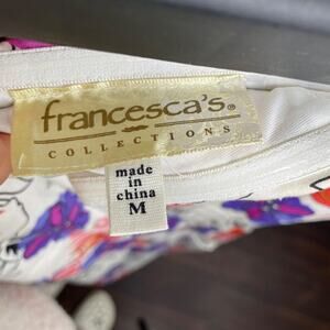 Francesca’s Womens Dress Size M Floral Strapless Sweetheart Neckline Mini. In pre-owned condition, normal signs of wear. Zipper on the back. Lined. Sleeveless. Multi-colored. Cotton blend.