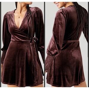 Francesca’s Women’s Mini Dress Wrap Blue Rain Velvet Brown Size XL NWT