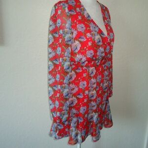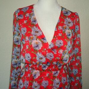 Francesca's Women's Red Floral Long Sleeve Wrap Dress Cocktail Blue Flowers