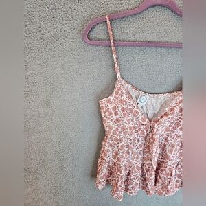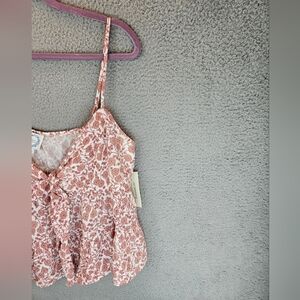 Francesca's X Blue Rain Rust Beige Floral Cropped Baby Doll Top Sz L Adj Straps