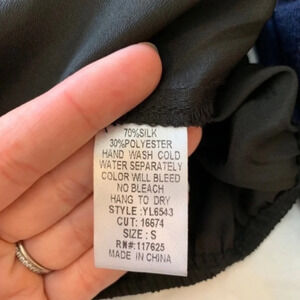 Francesca’s Ya Pinwheel Silk Top, Black, Size Small