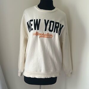 Francesca’s cream New York Manhattan, graphic crewneck sweatshirt size small
