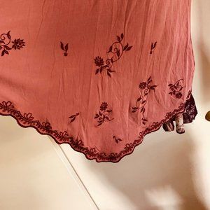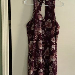 Mi Ami brand fun and flirty, maroon/floral dress, perfect for a date night or summer wedding! It falls almost to my knees (I'm 5/7''). Cute front and back cutouts. Comes with matching long sleeved, embroidered sweater, same brand.
