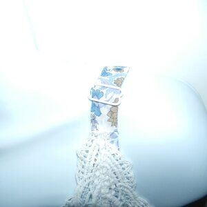Francesca's floral print crochet trim crop top is white crochet lace trim with a blue and brown dainty floral pattern, featuring a V-neckline and delicate crochet trim Floral light blue (4754)